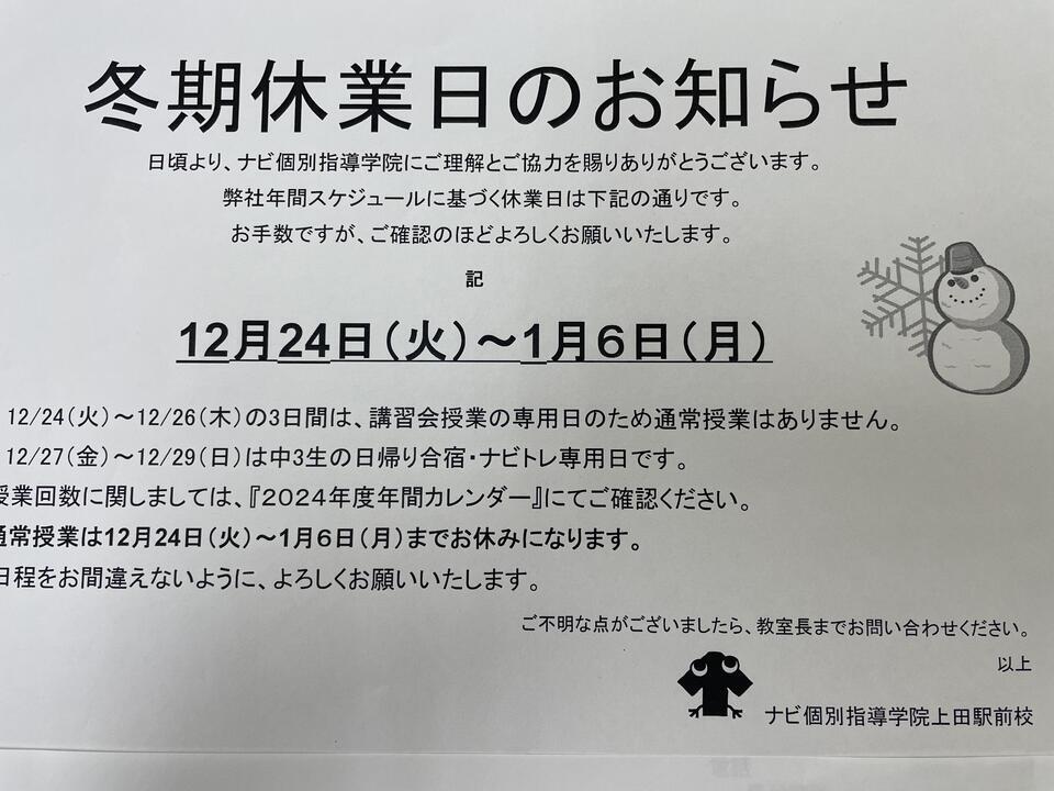 【12/24(火)~12/28(土)講習会専用日となっており通常授業はありません】