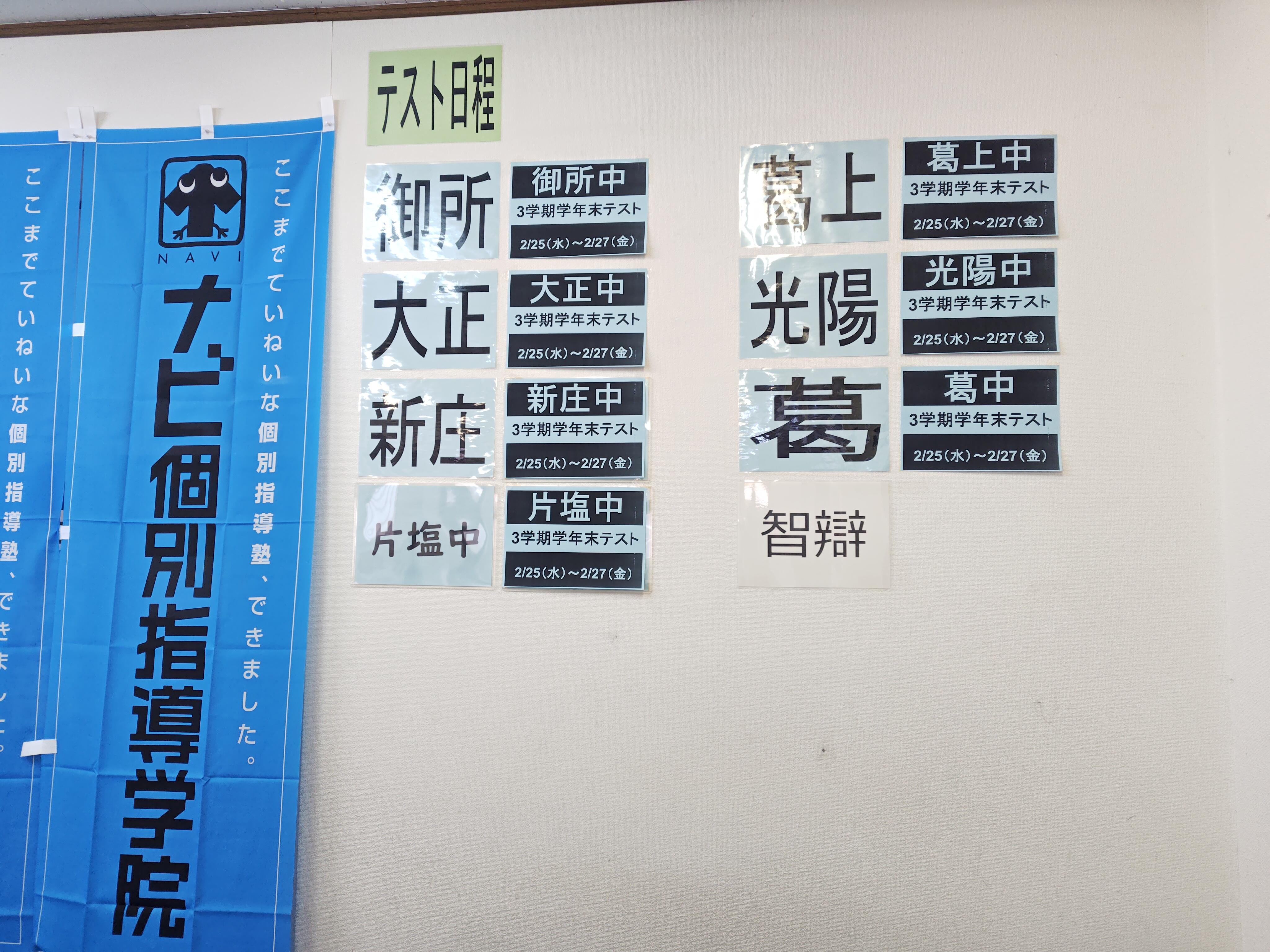 御所市内の中学校では学年末テストまで1週間を切りました。