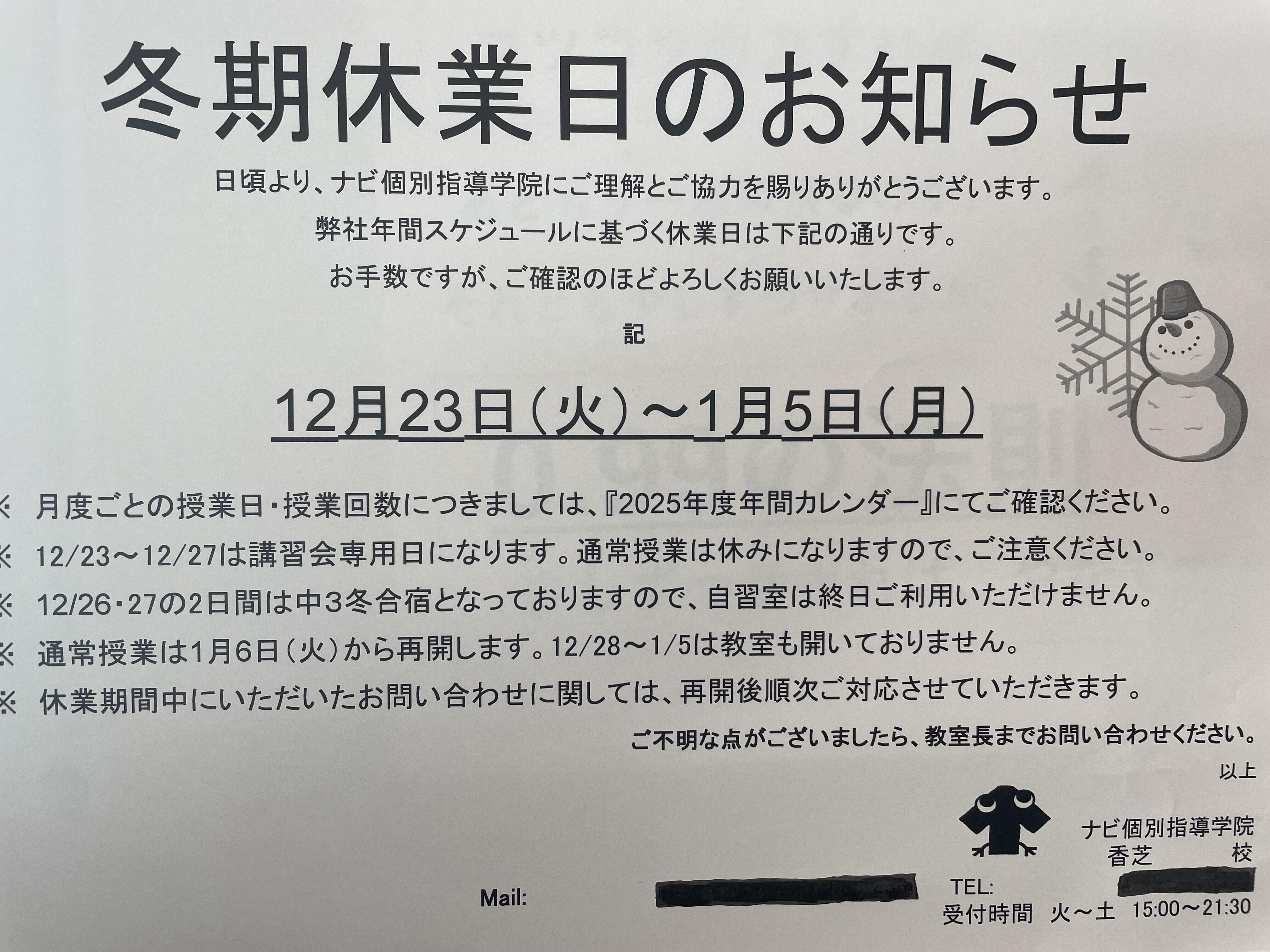 冬休みに入りましたが、塾は冬休みも当然稼働中で
