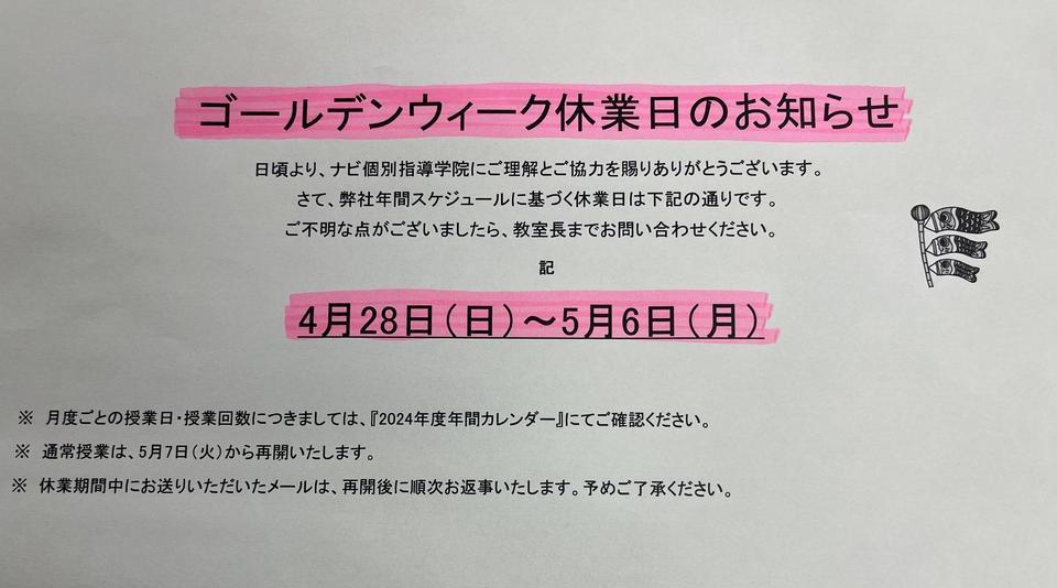 ナビ個別指導学院の下記の日程は