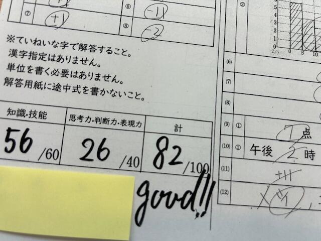 数学 82点!←最初のテストで緊張もしたと思いますが