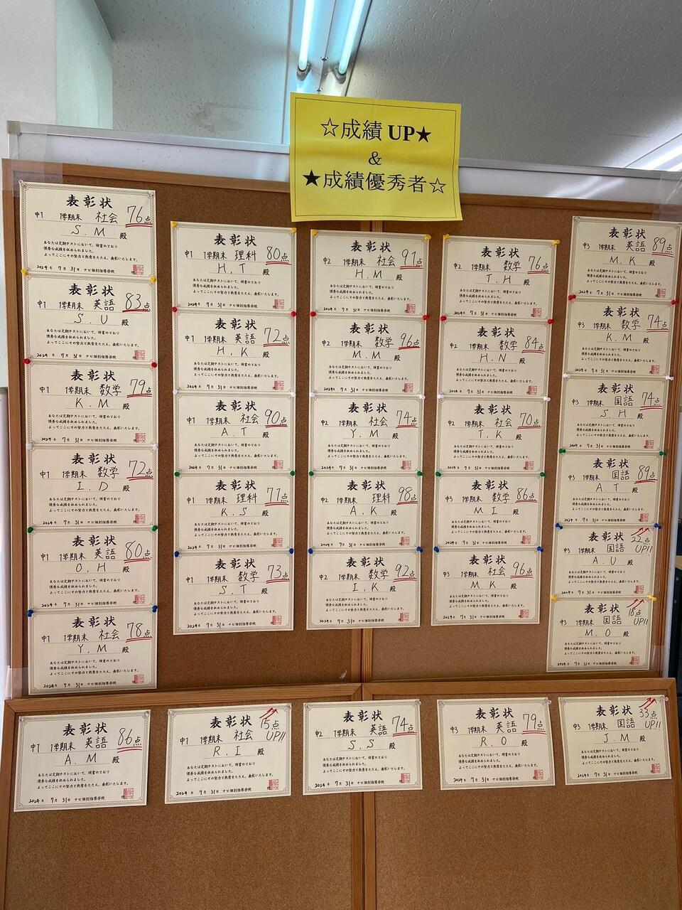 成績優秀者&点数大幅UP者の発表です!