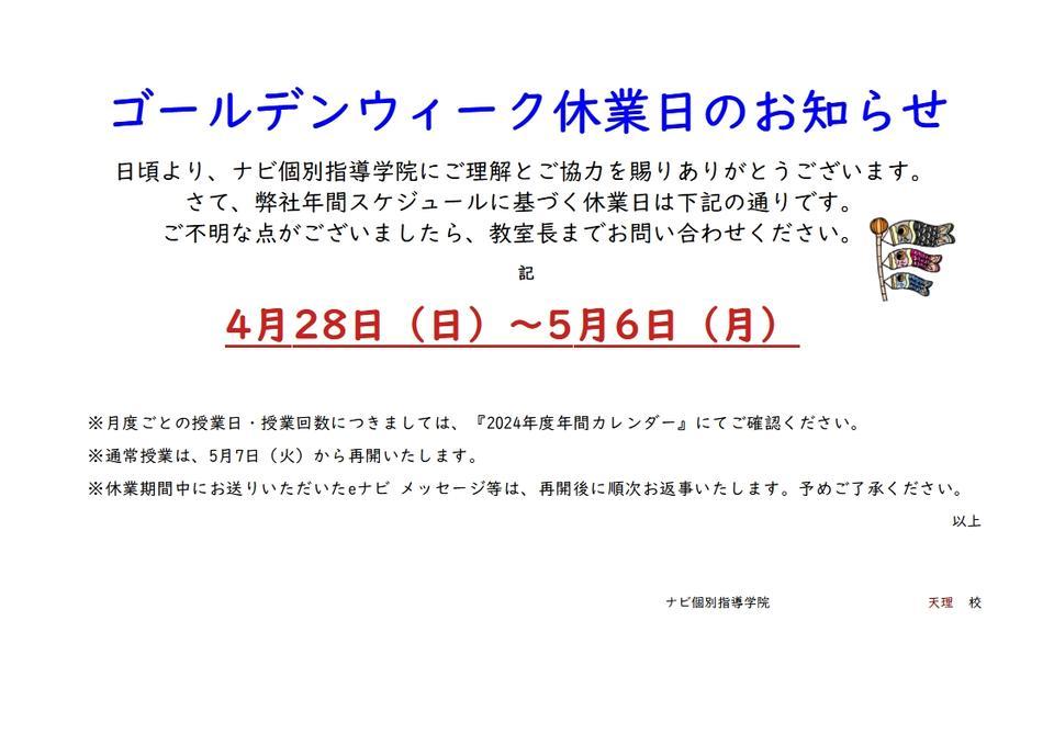 ★★★ ゴールデンウィーク休業日のお知らせ ★★★