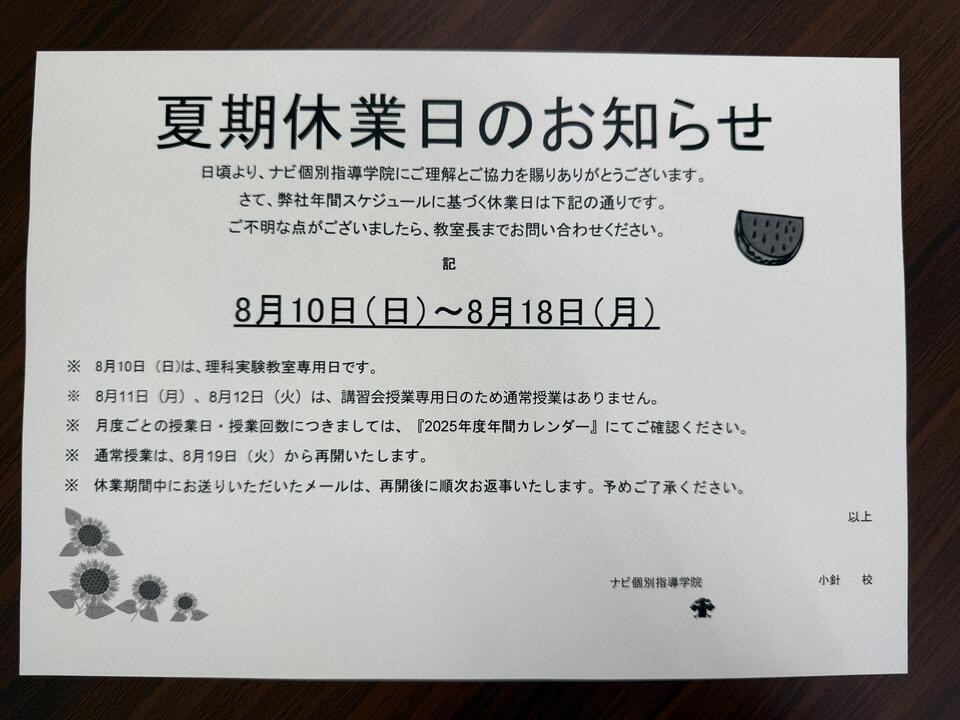 日頃より、ナビ個別指導学院にご理解とご協力を賜りありがとうございます。