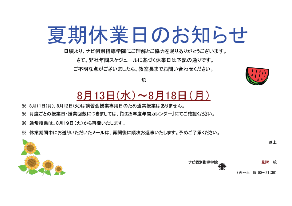 弊社年間スケジュールに基づく休業日は下記の通りです。