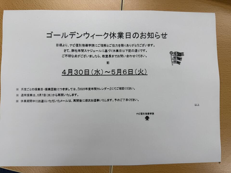 日頃より、ナビ個別指導学院にご理解とご協力を賜りありがとうございます。
