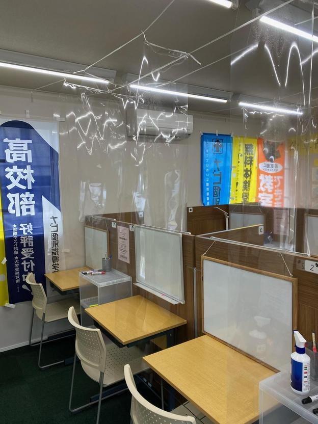 ナビ個別指導学院の授業は、個別の席ごとに設置された自分専用のホワイトボードで解き方や考え方を一緒に確認、それから生徒が問題を解くという「個別授業」スタイルです。