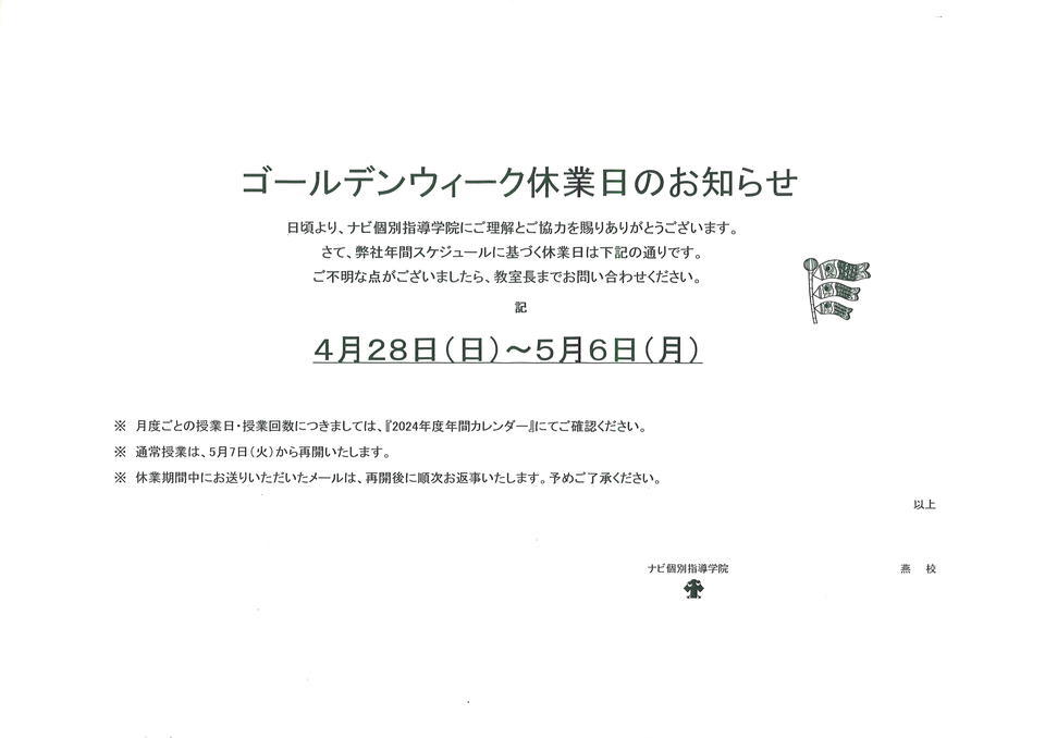 ご不明な点がございましたら、教室長までお問い合わせください。