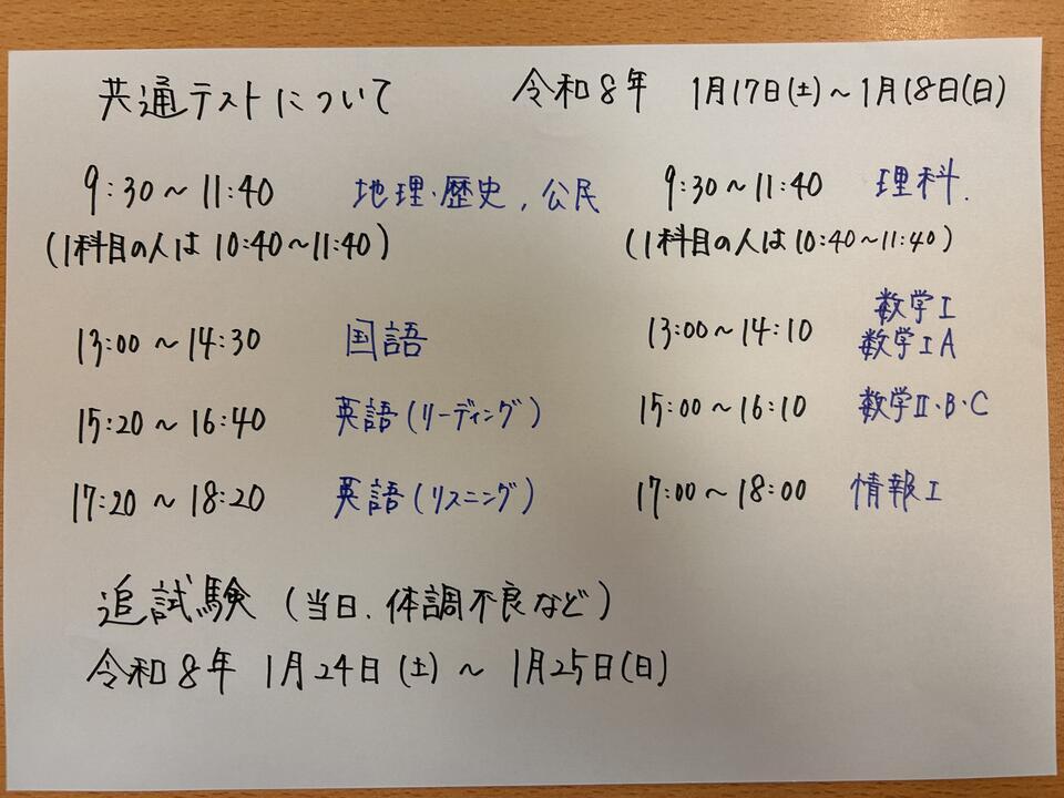 今年の共通テストは、1月17日(土)・18日(日)の2日間で実施されます。