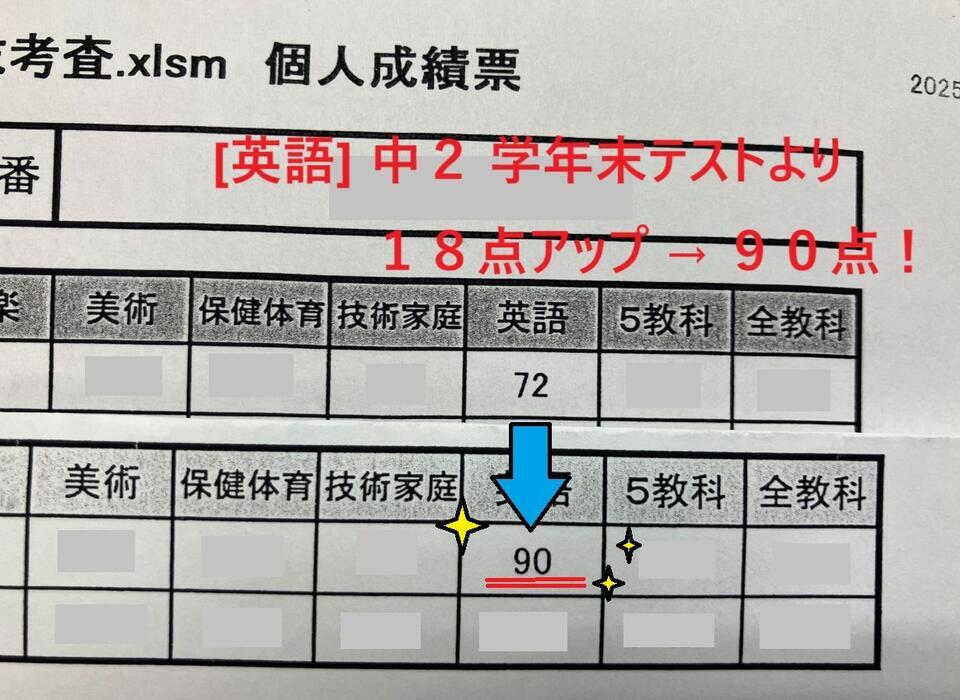 中2 学年末テストより18点アップ → 90点!