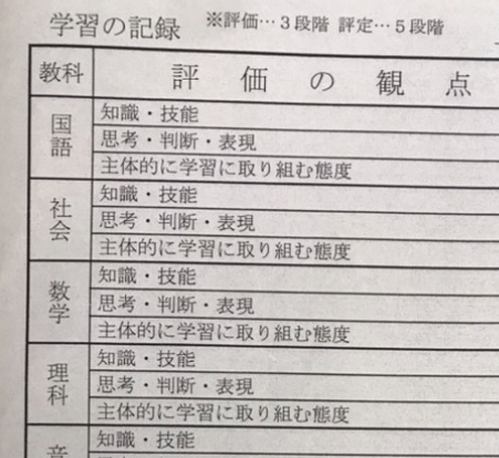 合計点数の他に「知識・技能」「思考・判断・表現」