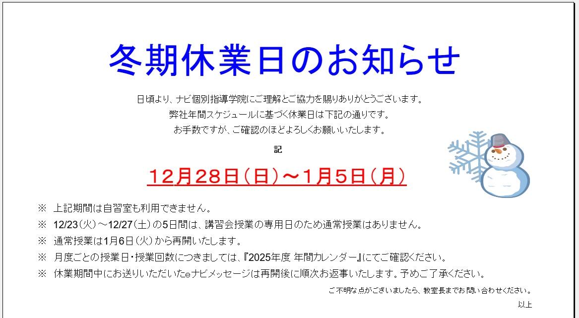 冬期休業日のお知らせです。