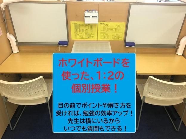 ナビ個別指導学院の授業は、個別の席ごとに設置された自分専用のホワイトボードで解き方や考え方を一緒に確認、それから生徒が問題を解くという「個別授業」スタイルです。