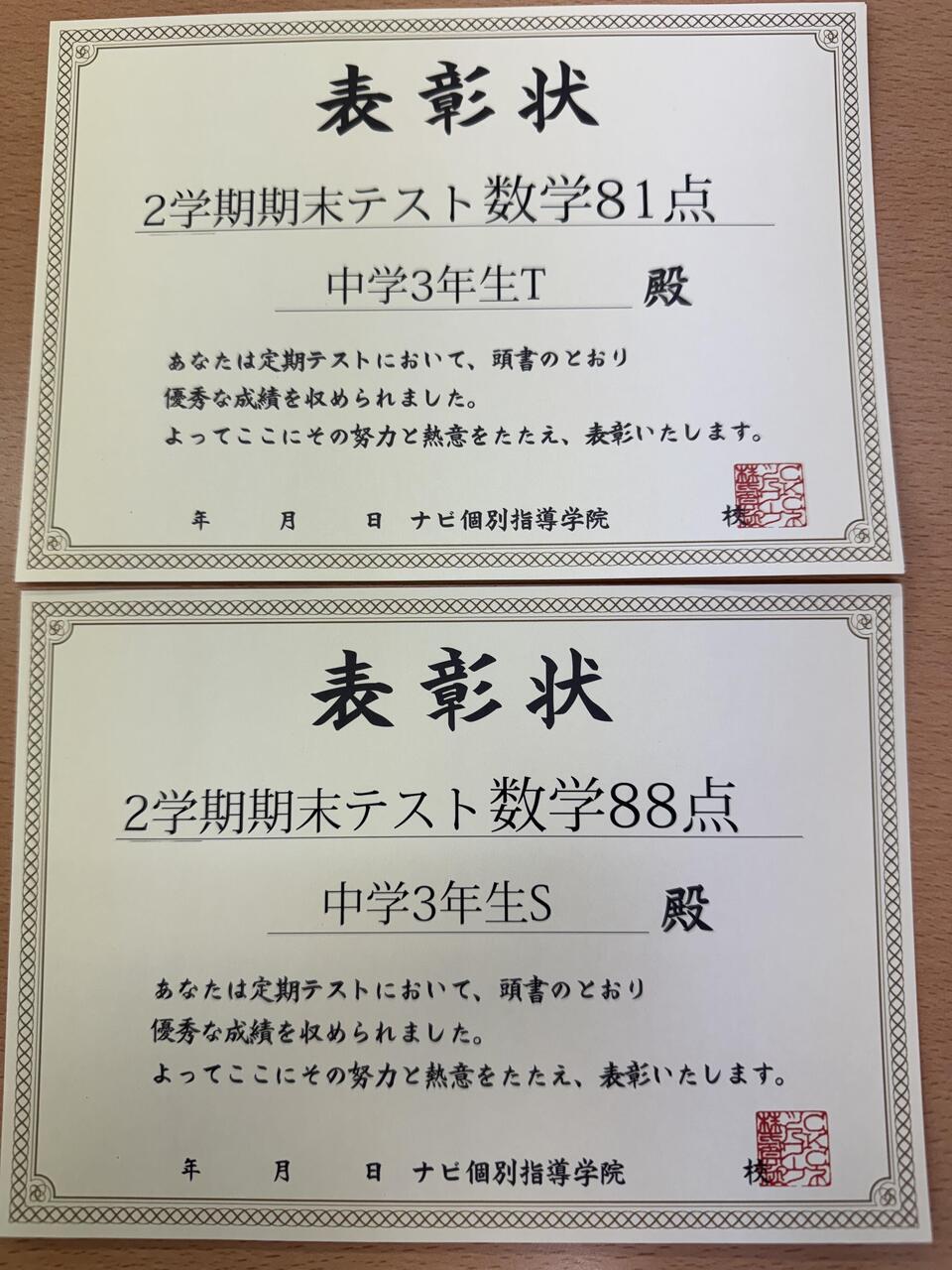 中学3年生の皆さんにとっては最後の定期テストでしたが