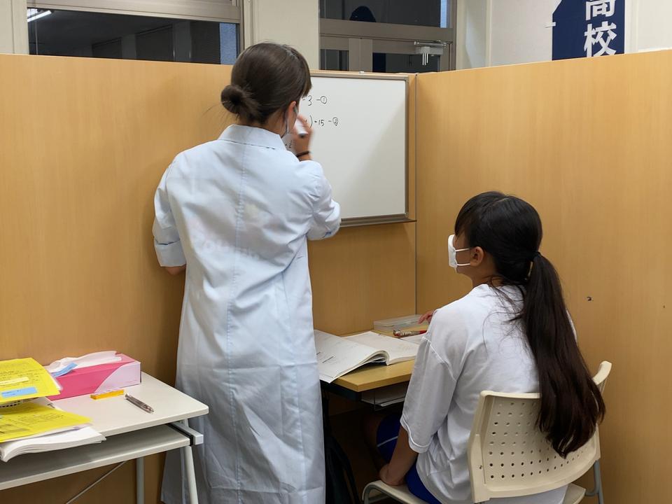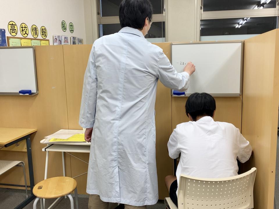 ナビ個別指導学院の授業は、個別の席ごとに設置された自分専用のホワイトボードで解き方や考え方を一緒に確認、それから生徒が問題を解くという「個別授業」スタイルです。