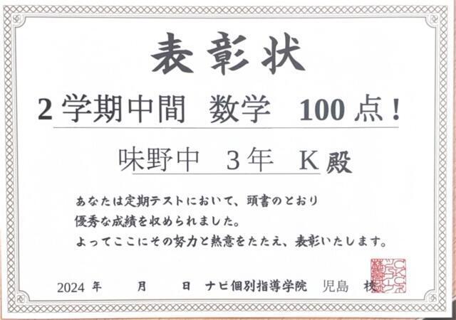 本日は2学期中間テストで優秀な成績をのこした生徒さんをご紹介いたします!
