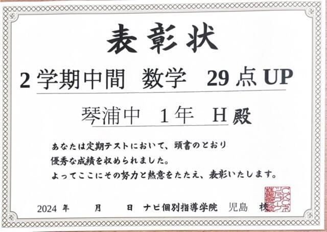 本日は2学期中間テストで成績UPした生徒さんをご紹介いたします!
