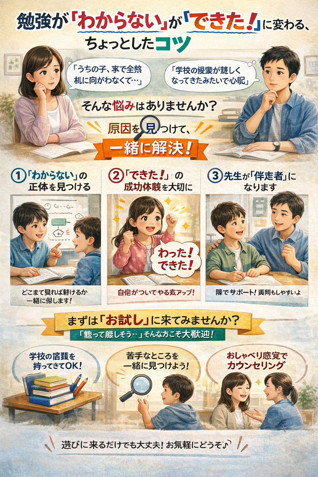 - 苦手なところを一緒に見つけよう!