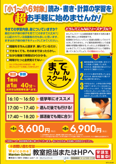 本日は小学生対象のまんてんスクールについてお話します!