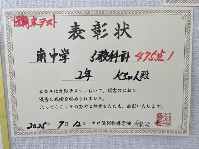 今日は期末テスト成績優秀者の紹介です