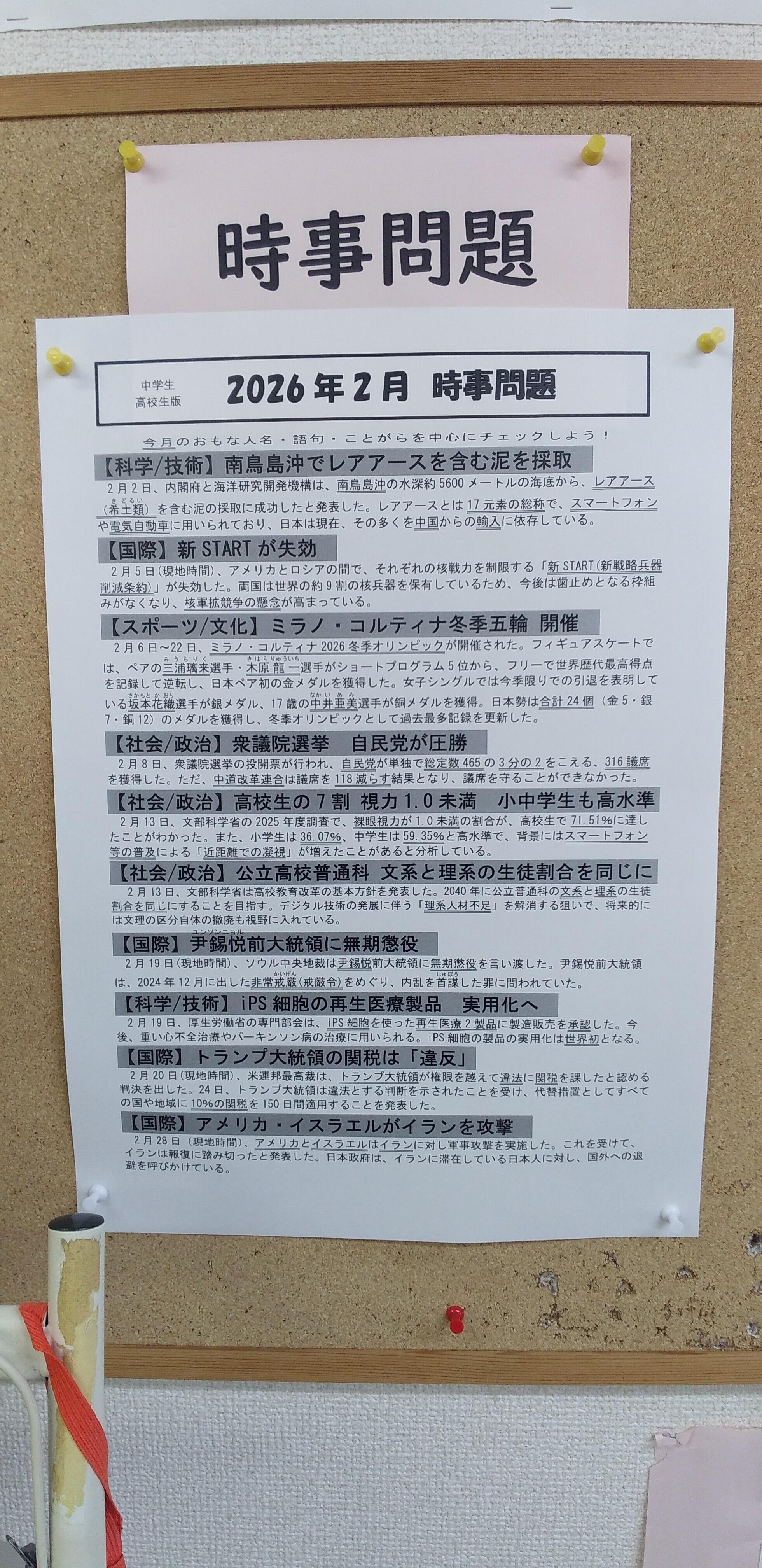 また2月の時事問題を貼り出しています。