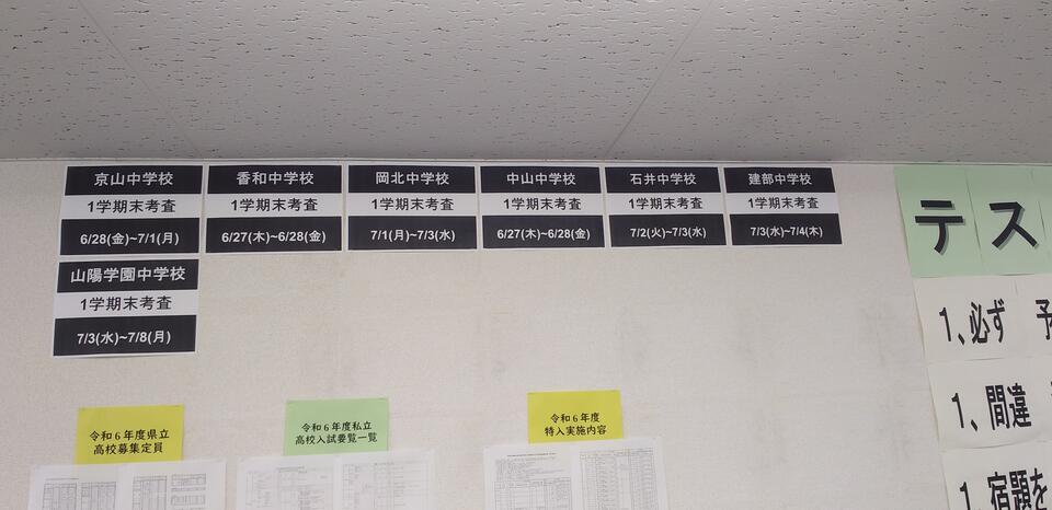 週に1回通っている生徒でしたら、あとテストまで4、5回です。
