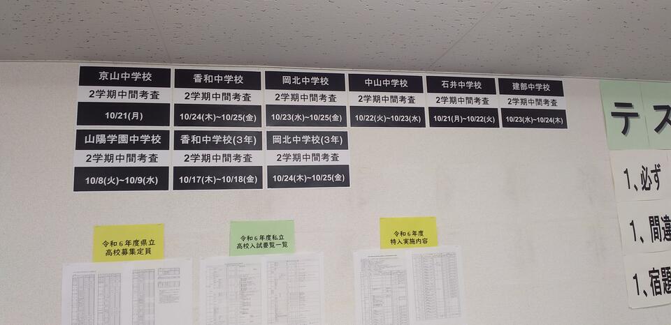 みなさんお中学校、高校の試験の日程も貼り出しました。