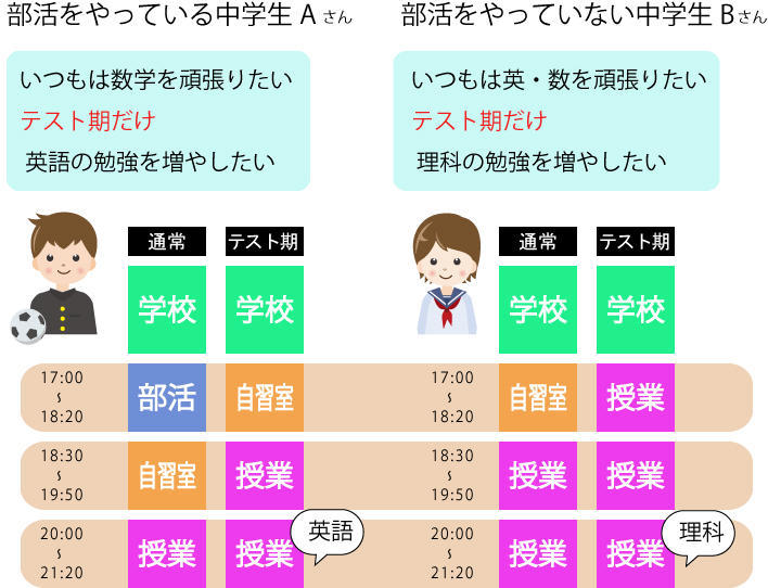 また部活がお休みのテスト週間や受験期は授業のコマ数、