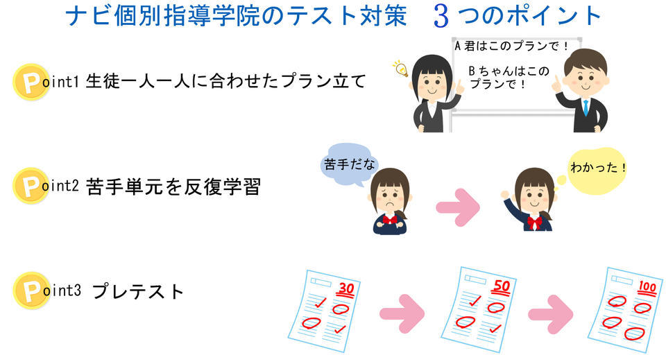 ナビ個別指導学院では、定期テストの2週間前から、
