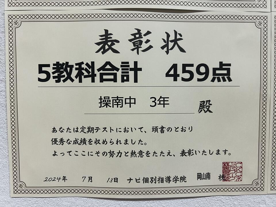 5教科 459点と史上最高得点を取ってくれました!