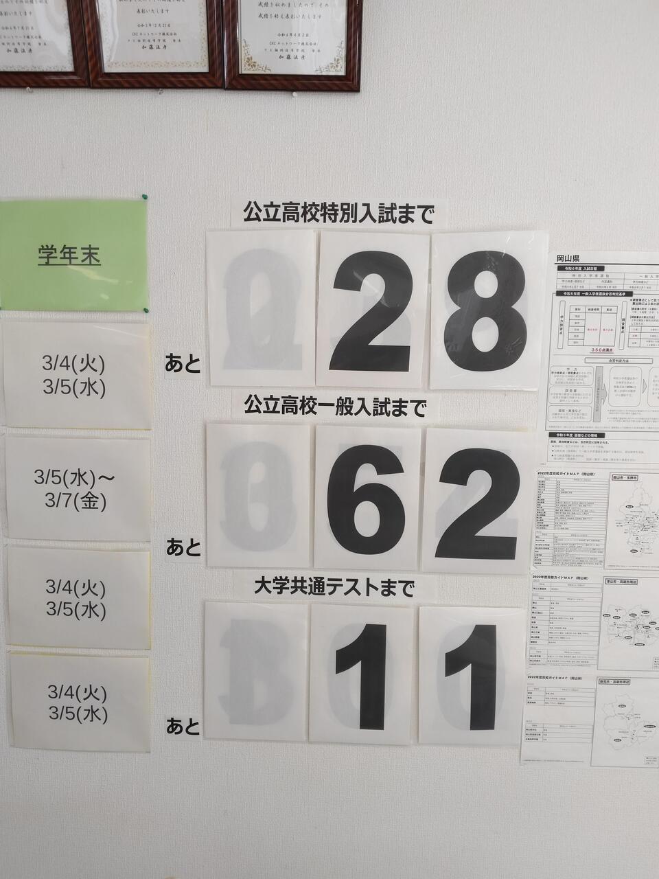 特別入学者選抜まで残り28日、一般入学者選抜まで62日です!