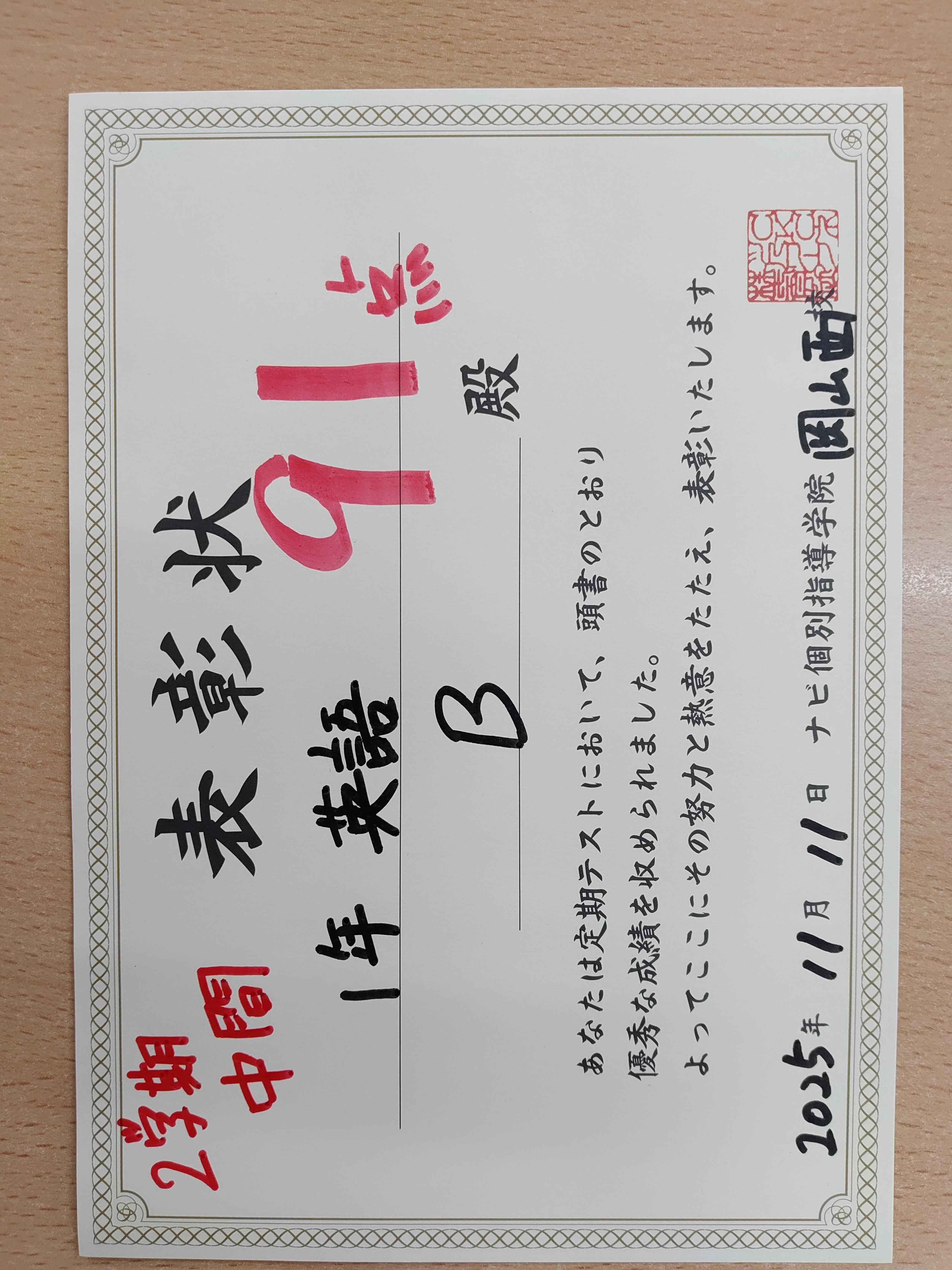 7月にご入塾頂いてから、講師と二人三脚で頑張りました。