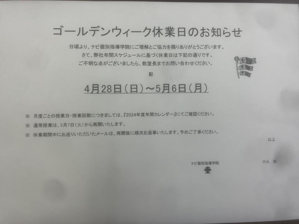 日頃よりナビ個別指導学院にご理解とご協力を賜りありがとうございます。