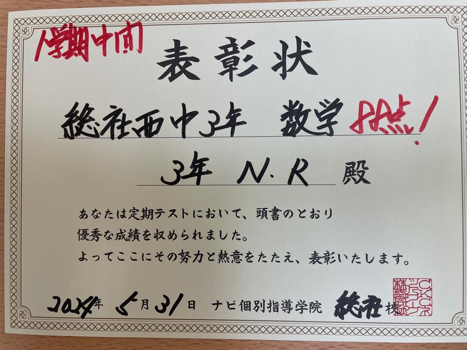 この調子で期末テストも頑張りましょう!!