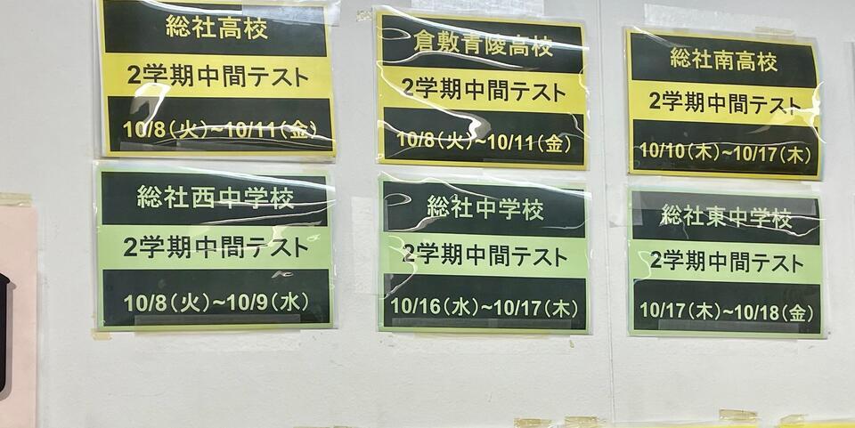 特に総社西中の方! 2学期の中間テストはすぐ来ます。