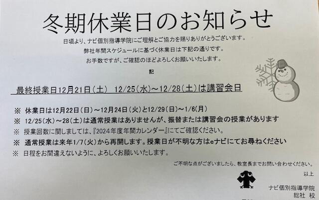 今日は冬期休業のお知らせです。