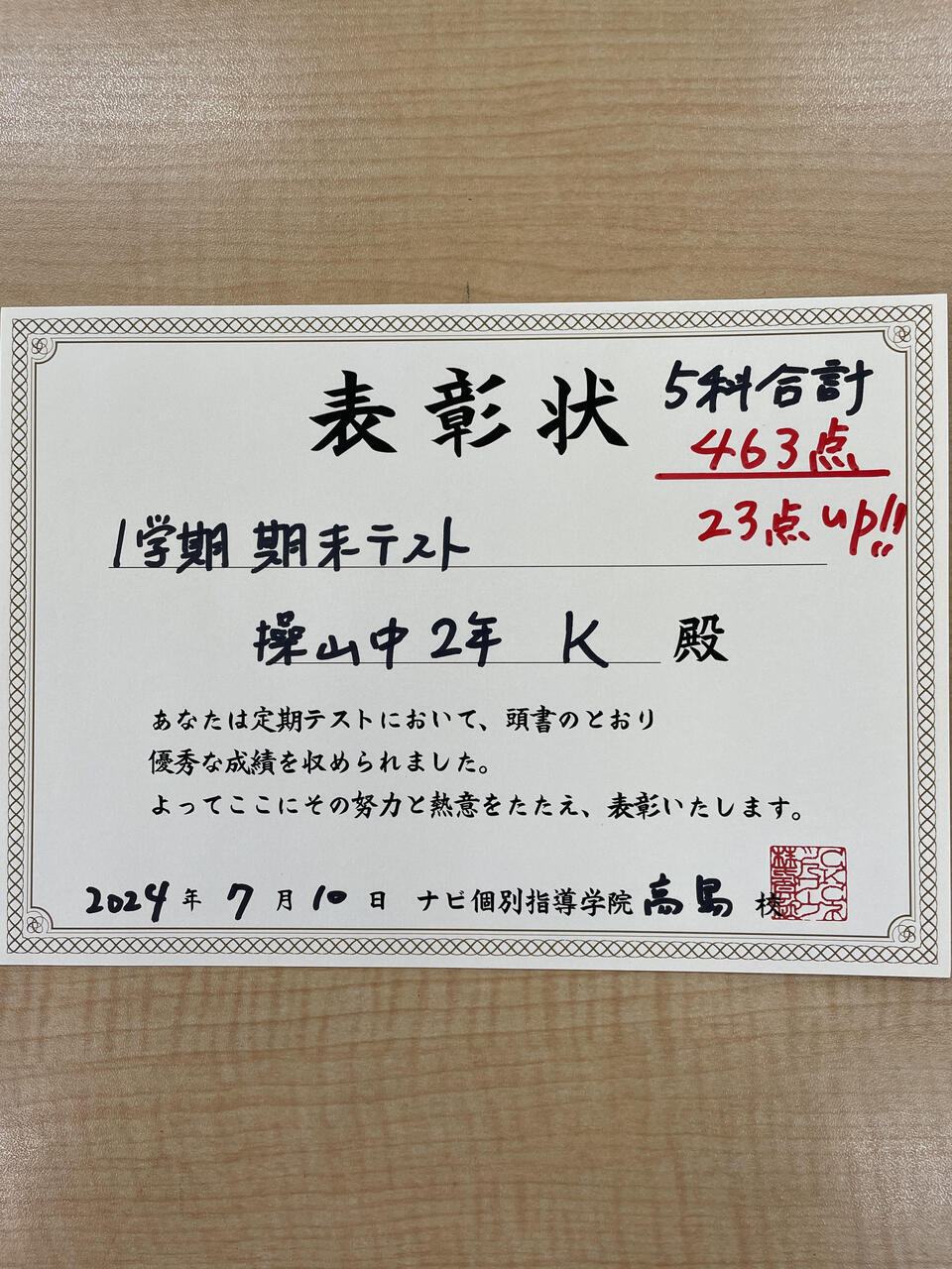 5教科463点!(23点UP!)