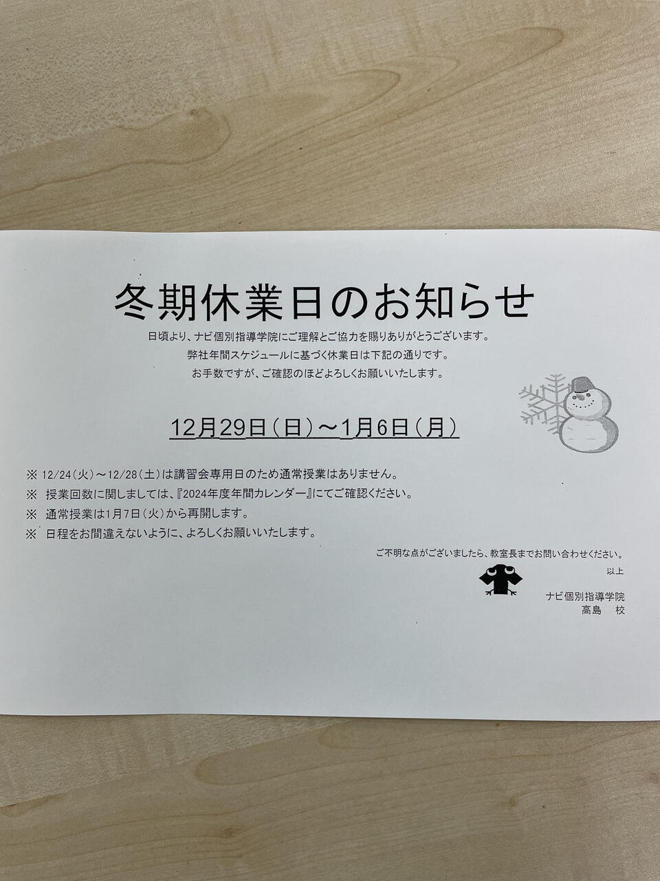 お休み中にいただいたご連絡は冬期休業明け以降に返信させていただきます。