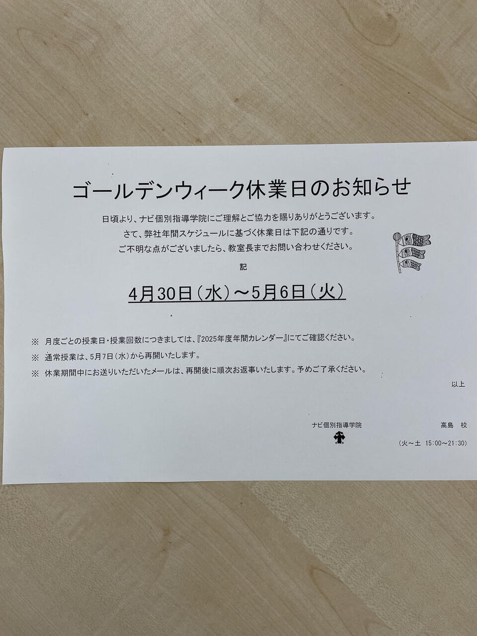 お休み中はくれぐれも体調には気を付けてお過ごしください。