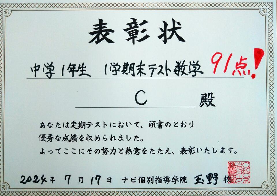 中学校1学期末テスト「頑張りましたね!!」の第3弾です。