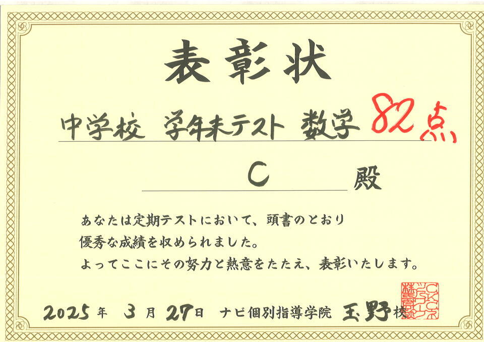 中学校学年末テスト「頑張りましたね!!」の第4弾です。