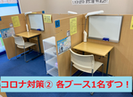 ナビ個別指導学院の授業は、個別の席ごとに設置された自分専用のホワイトボードで解き方や考え方を一緒に確認、それから生徒が問題を解くという「個別授業」スタイルです。