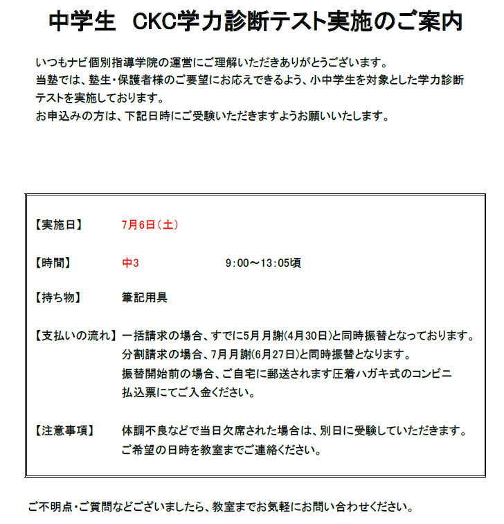 中3生は今回のテストで志望校にたいしての判定も出ます。