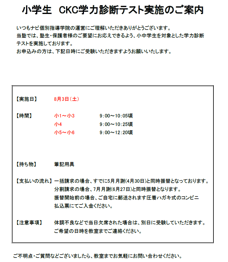 生徒の皆さんは、復習をしっかりしてテストを受けるようにしてくださいね!
