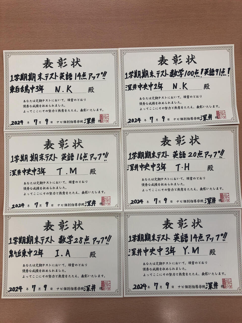 前回のテストから成績の上がった生徒が大勢いました!