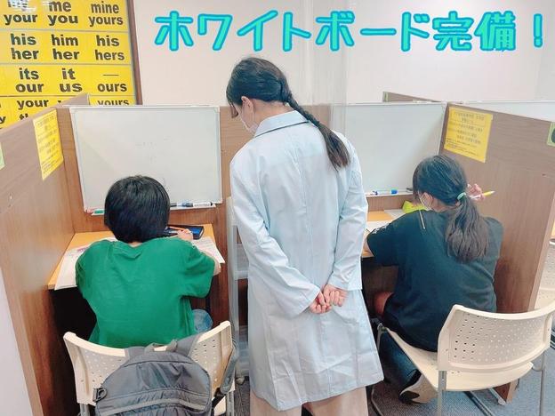 ナビ個別指導学院の授業は、個別の席ごとに設置された自分専用のホワイトボードで解き方や考え方を一緒に確認、それから生徒が問題を解くという「個別授業」スタイルです。