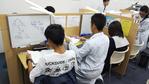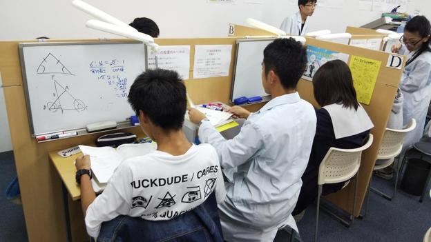 ナビ個別指導学院の授業は、個別の席ごとに設置された自分専用のホワイトボードで解き方や考え方を一緒に確認、それから生徒が問題を解くという「個別授業」スタイルです。