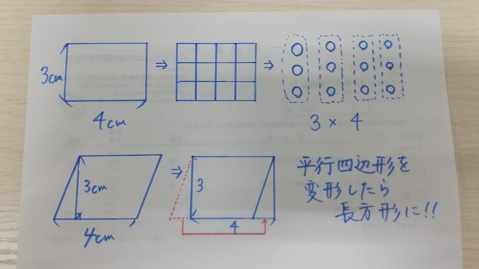 さらには、平行四辺形の面積の公式は「底辺✕高さ」ですね。