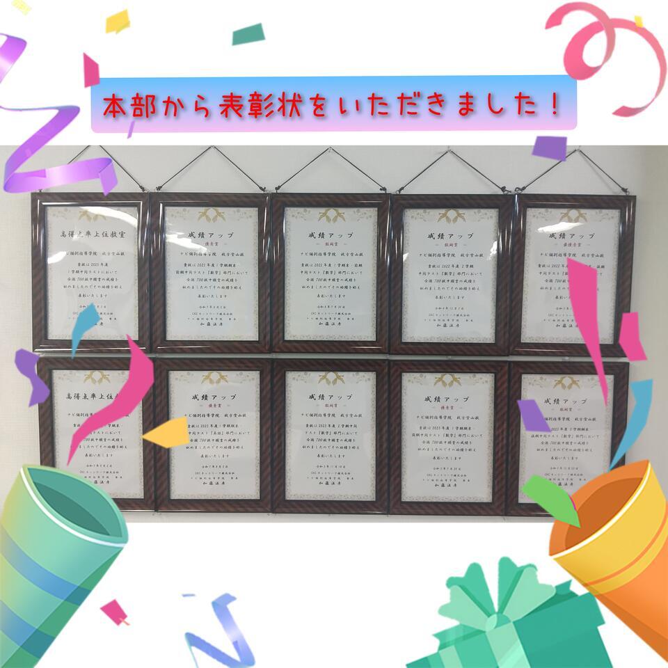 ナビ個別指導学院では、成績が上がった生徒さんをたくさん褒めて、このように表彰していただいております。