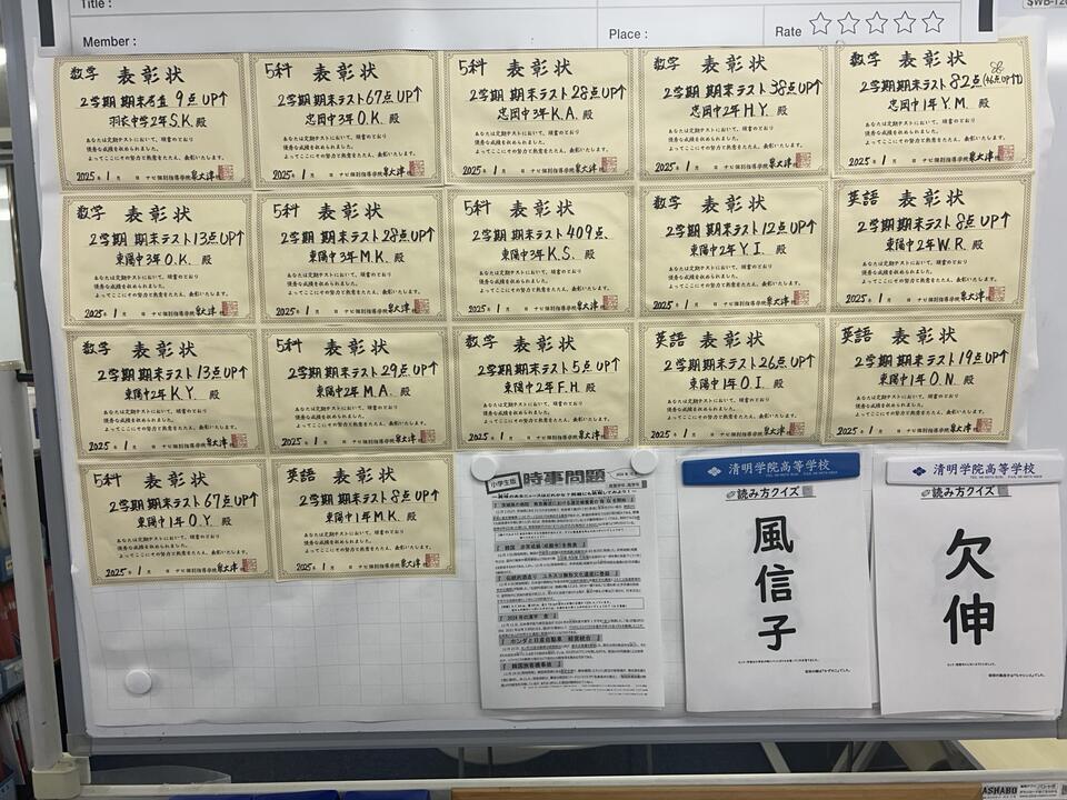 東陽中学と忠岡中学の去年の2学期期末テストの表彰状を作りました!